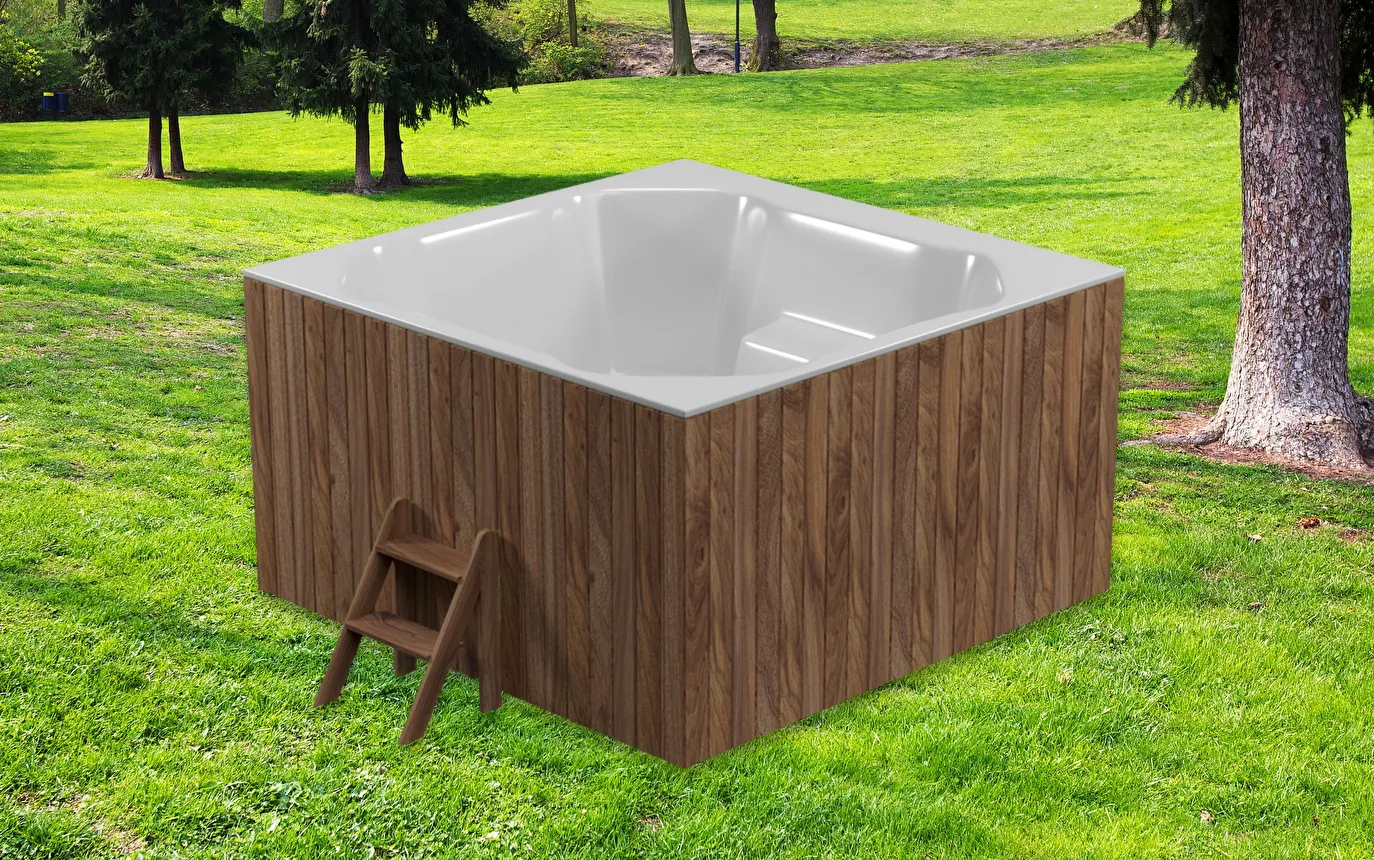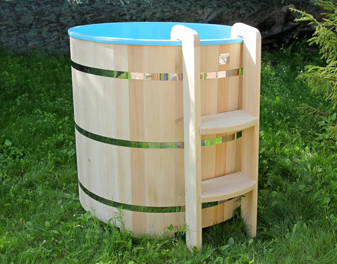 Вот такая купель стоит в семейном отеле. За счет пластиковой вставки легко мыть после большого потока клиентов. Пользуемся давно, поэтому на качество проверили!
