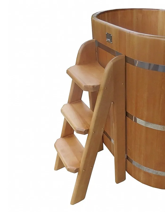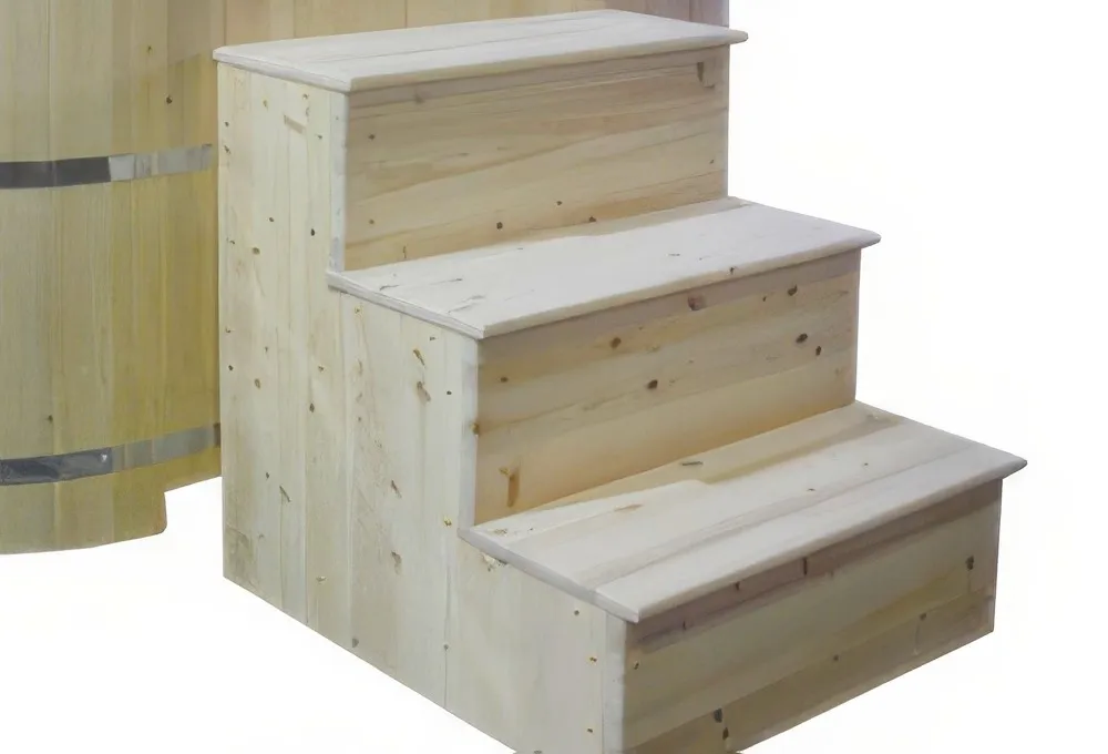 Небольшой подиум из кедра с двумя ступенями, отлично подойдет для купелей и ванн небольшой высоты - 1000 мм.