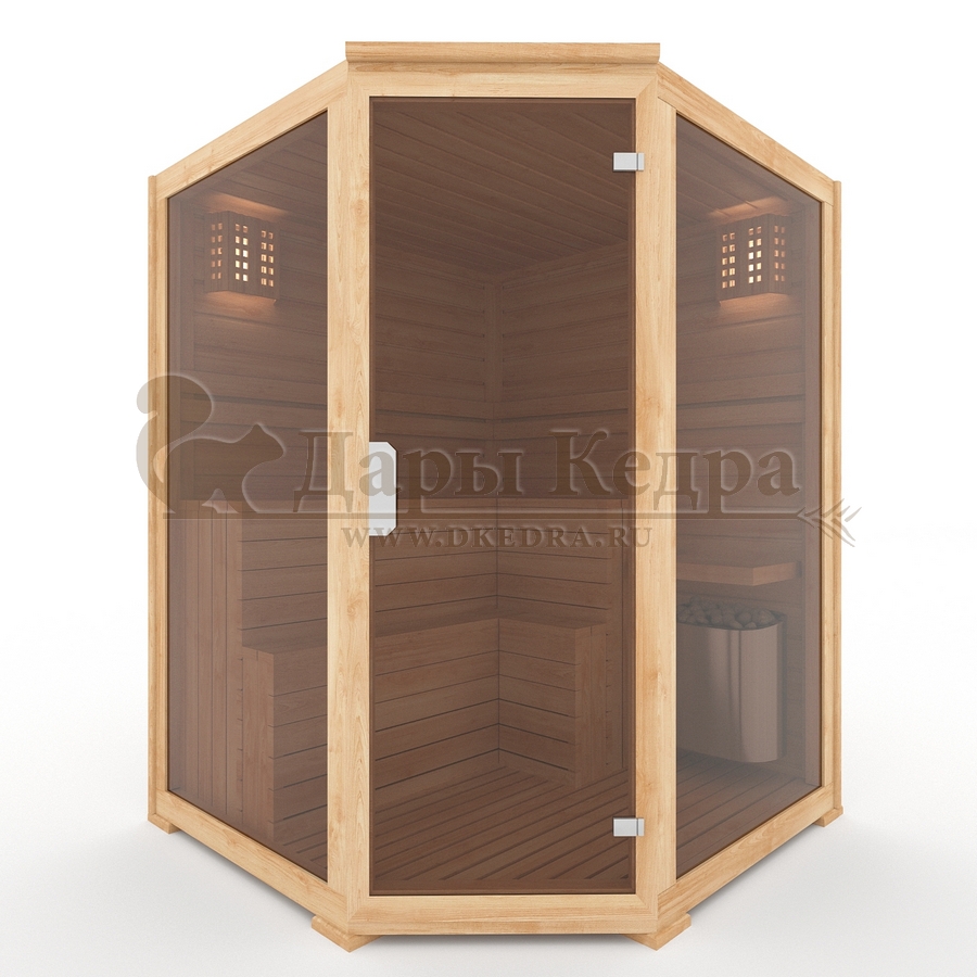 Двухместная угловая финская сауна кабина из кедра с электрокаменкой