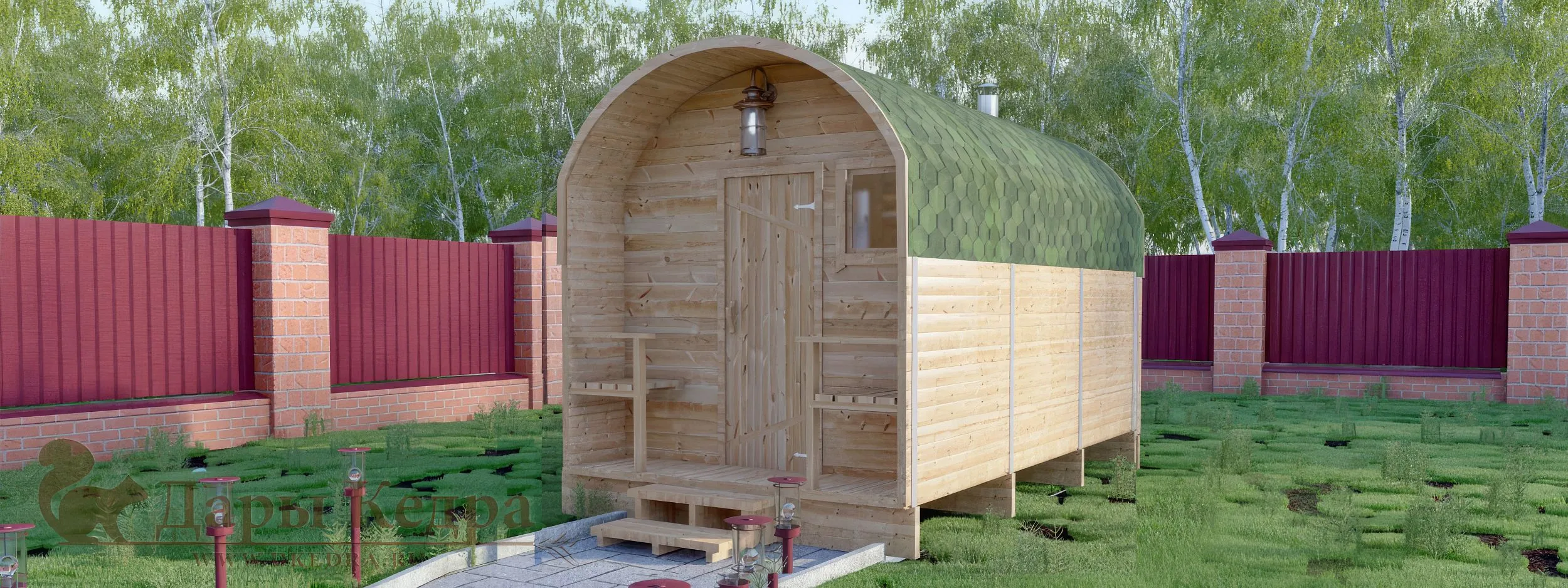 - Баня-бочка в виде буханки - это сочетание красоты и комфорта по доступной цене.