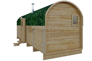 Баня-бочка представляет собой конструкцию в виде бочонка без углов. Такая форма считается оптимальной для равномерного распределения пара по всей внутренней поверхности парной. Таким образом, пар не скапливается в одном месте, а циркулирует по всему объему. Соответственно, круглая (квадратная, овальная) баня экономичная: топится быстро, требует дров мало.