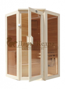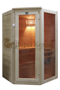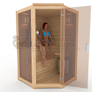 Двухместная угловая финская сауна кабина из кедра и липы с электрокаменкой