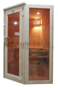 Финская сауна с электрокаменкой представляет собой компактную парную кабину, изготовленную из целебной древесины сибирского кедра. Финская