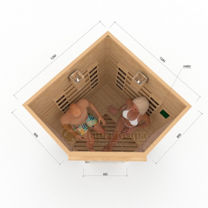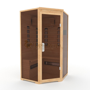 Это специально оборудованная кедровая кабина для прогрева тела человека сухим теплом. Воздух в таких парных не нагревается. Инфракрасные лучи воздействуют на тело, равномерно прогревая мышцы, суставы и органы. Керамические излучатели похожи на лампы, имеют высокую температуру нагрева, поэтому защищены противоожоговыми решетками. Тело человека в таких саунах нагревается интенсивнее. Работает кабина за счет электричества. Установка сауны в угол, позволяет рационально использовать пространство помещения. Подходит как для домашнего использования, так и для коммерции.