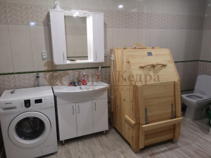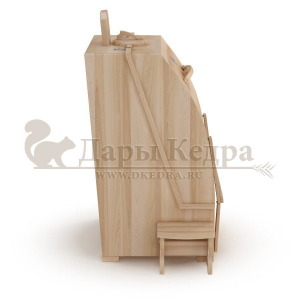 Квадратная фитобочка из кедра - это мини парная, которую можно использовать не только в спа-салонах, но и дома. Толщина стенок составляет 40-45 мм, что позволяет увеличить срок службы изделия. Откидная дверь бочки во время открывания фиксируется внешней подставкой - опорой, которая в закрытом состоянии складывается и не занимает лишнее пространство. Во время парения человек сидит внутри кедровой бочки, а голова находится снаружи. Благодаря этому исключается возможность перегрева. Встроенная ручка из кедра на двери делает эксплуатацию фитобочки более удобной.