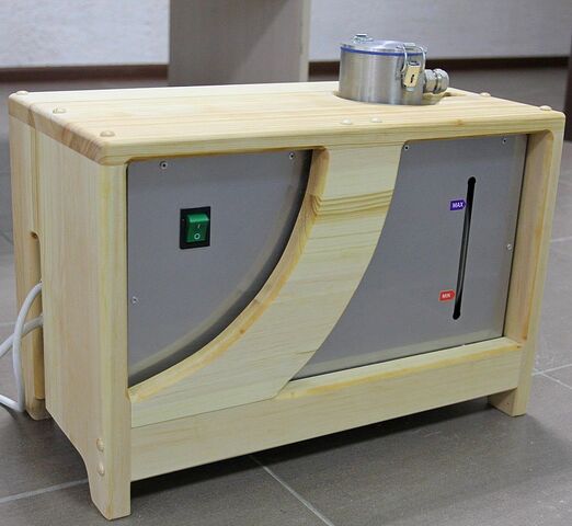 • Парогенератор накопительный, 1,6 кВт с встроенным цифровым пультом управления Прибор служит для создания пара путем закипания воды. В металлическом корпусе парогенератора находится бак для воды со съемной аромаемкостью в виде сеточки. Рядом располагается индикатор в виде трубки, благодаря которому осуществляется визуальный контроль за уровнем воды. Парогенератор накопительного типа работает от электричества и не требует подключения к водопроводу. Вода в него добавляется самостоятельно. Управление парогенератором осуществляется за счет встроенного пульта, с помощью которого устанавливается температура, мощность и время процедур парения. При превышении заданной температуры и низком уровне воды устройство отключается автоматически. Целебный пар поступает в фитобочку по паропроводу и насыщает организм человека полезными веществами.