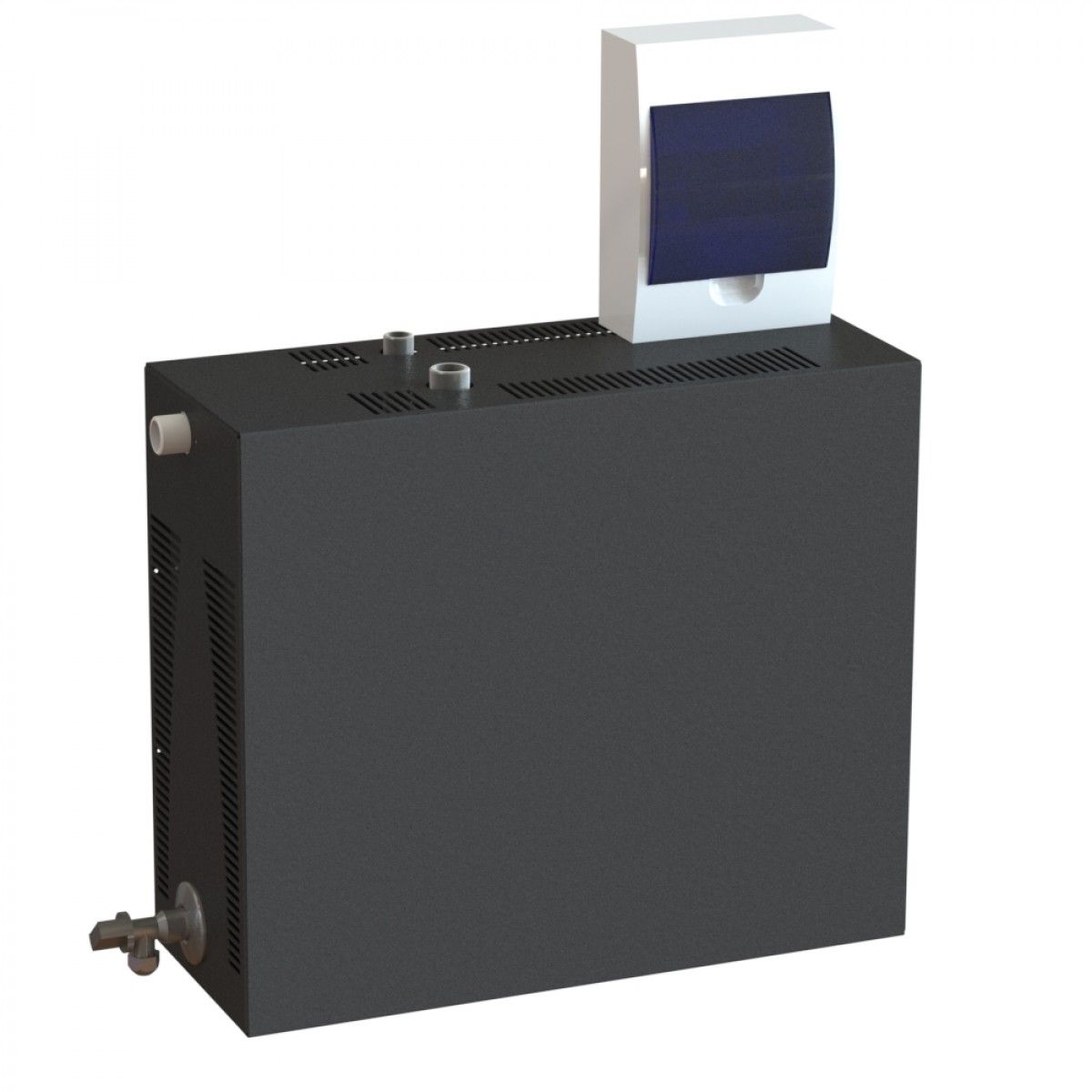• Парогенератор проточный с выносным пультом управления, 21 кВт Проточные парогенераторы подключаются к водопроводу и автоматически добавляют воду в прибор при ее расходовании. Парогенератор служит для образования пара в саунах, хамамах, банях и душевых кабинах. Мощность стоит выбирать в зависимости от объема парной. Для удобства пользования парогенератор имеет выносной пульт управления, который позволяет установить температуру, мощность и время процедур парения. При достижении необходимой температуры происходит автоматическое прекращение подачи тепла для нагрева воды. При снижении температуры более чем на 3°С температурный датчик снова включает подогрев. Таким образом время непрерывной работы парогенератора составляет более 12 часов.