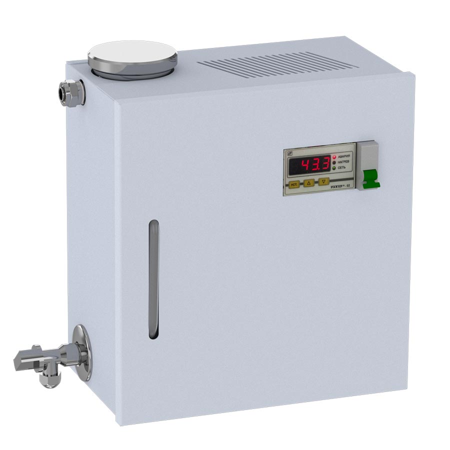 • Парогенератор проточный, от 4 до 8 кВт Проточные парогенераторы подключаются к водопроводу и автоматически добавляют воду в прибор при ее расходовании. Парогенератор служит для образования пара в саунах, хамамах, банях и душевых кабинах. Мощность стоит выбирать в зависимости от объема парной. При достижении необходимой температуры, происходит автоматическое прекращение подачи тепла для нагрева воды. При снижении температуры более чем на 3°С, температурный датчик снова включает подогрев. Таким образом время непрерывной работы парогенератора составляет более 12 часов.